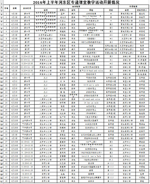 为了充分利用网上同步上课的方式,使边远地区上不齐课、上不好课的农村学校与拥有相对丰富教育资源的城市学校同上一堂课,以共享优质教育资源,提高教学质量。河东区每学期伊始,都安排各听课教室与各主讲教室确定上课时间与节次,并在河东在线学堂予以发布、直播、研讨。