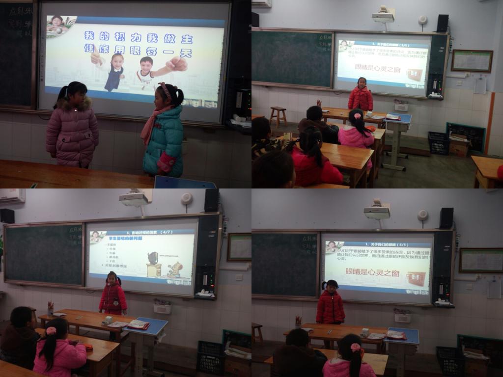 当今电子产品的更新换代,手机变成了小学生手中的玩具,不正确的读书写字姿势等等原因,导致学生的近视率明显提高。队员们通过从自身的学习生活中的小窍门分享爱眼护眼的方法。“读书、写字、看电视等需要进行短暂的休息,缓解视觉疲劳”队员们分享了自己的“爱眼护眼”小妙招。