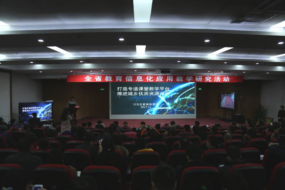 18日上午,河东区东城实验学校的张珊老师,在本校的录播教室内展示了一节别开生面的课堂教学课。课堂上,在张珊老师的引导下,东城实验小学、在会场的常庄小学和凤凰岭中心小学的孩子们通过专递课堂直播平台,一起学习、一起思考、一起读书,兴趣盎然,俨然就是一个教室,孩子们熟练地通过互动平台,发表自己的见解,回答老师的问题,时而两方互动,时而三方交流,没有任何的生疏感,达到了共同学习、共同进步的目的。随后,我区又做了主题为《 打造专递课堂教学平台,推进城乡优质资源共享》的典型发言,并作为六名嘉宾之一,与400名与会代表进行现场互动答疑。我区的整个展示交流活动,受到了省市各级领导和与会代表们的一致肯定和高度赞扬。